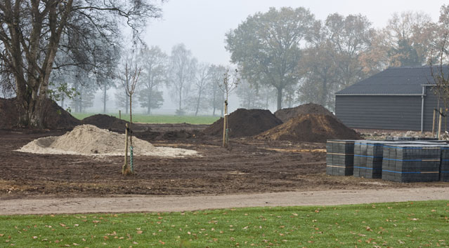 Bij dit project komen verschillende machines in actie. Aanleg van de nieuwe tuin, oprijpad en straatwerk rondom het huis en de schuur.