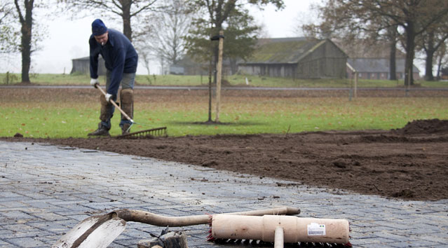 Hiernaast een serie foto's van ons project "Onder de Hamer". De opdracht was een lange oprijlaan van een landhuis voorzien van een mooi egale straat. Alle oude waaltjes zijn eruit gehaald, de ondergrond geëgaliseerd en de waaltjes zijn er opnieuw handmatig ingelegd. De oprijlaan ligt er nu weer perfect bij.